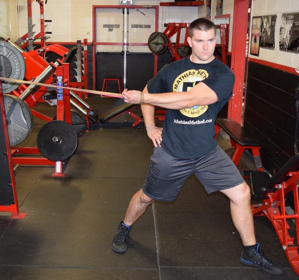 - Turn inward so that your arm begins to wrap around your body and walk sideways away from the place of pull until your scapula begins to be pulled forward.